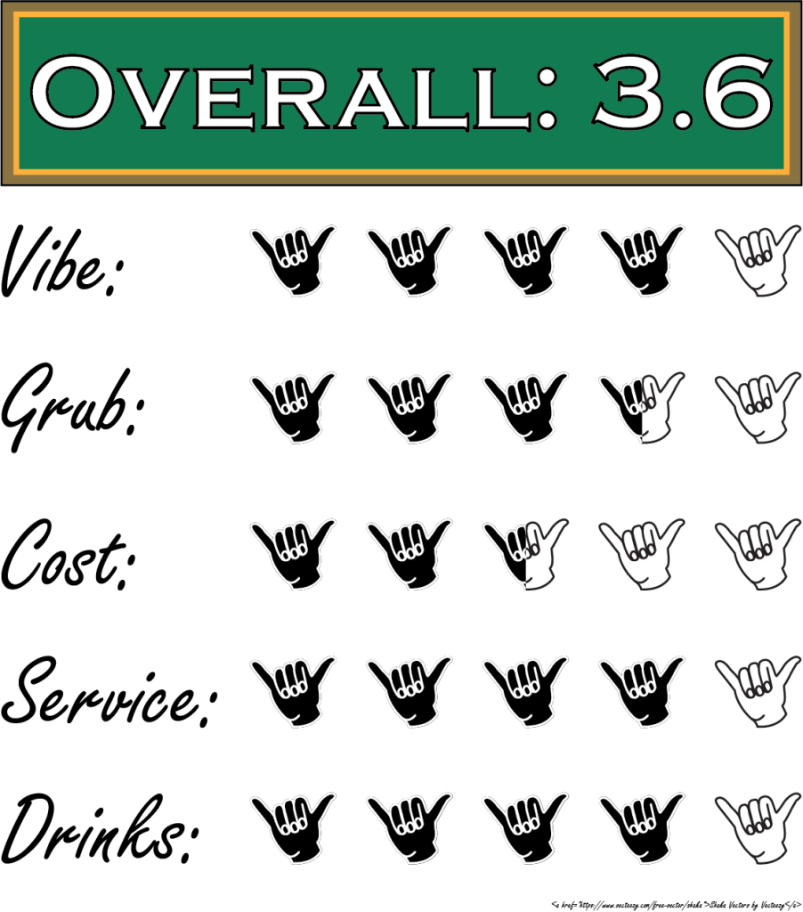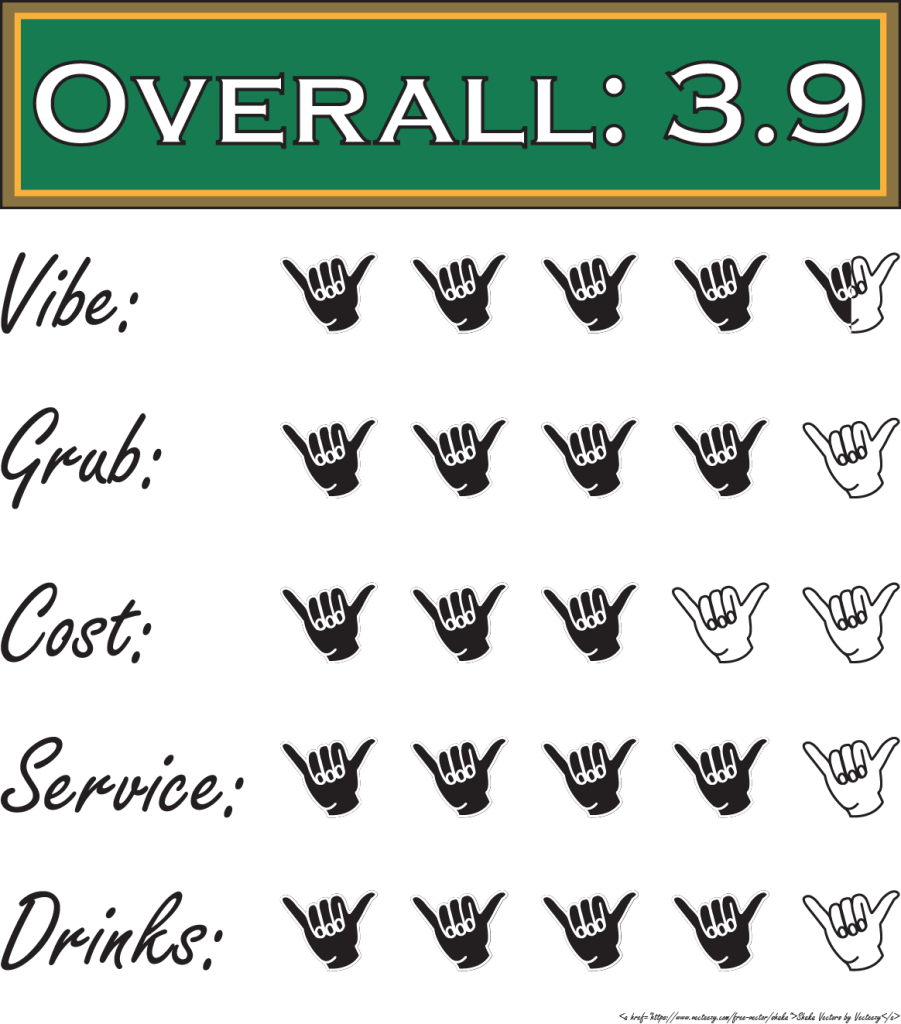 Overall it was a great place to spend a Sunday morning and watch some football with some friends. Also, GUYS if you come here and have to use the restroom always use the left urinal. You’ll thank me later.