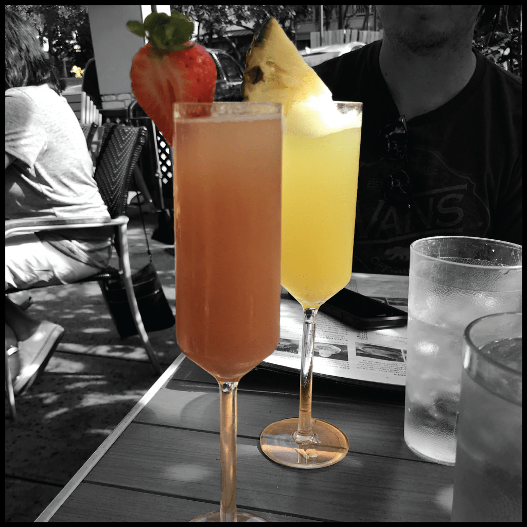 So naturally we took this as a challenge! The mimosas were served in a very thin glass, which gets more precarious the more you have, they consisted of mostly champagne with a splash of OJ. The downside here is that the waitress refills your glass from a pitcher, which makes it hard to judge how much you are actually drinking… dangerous.